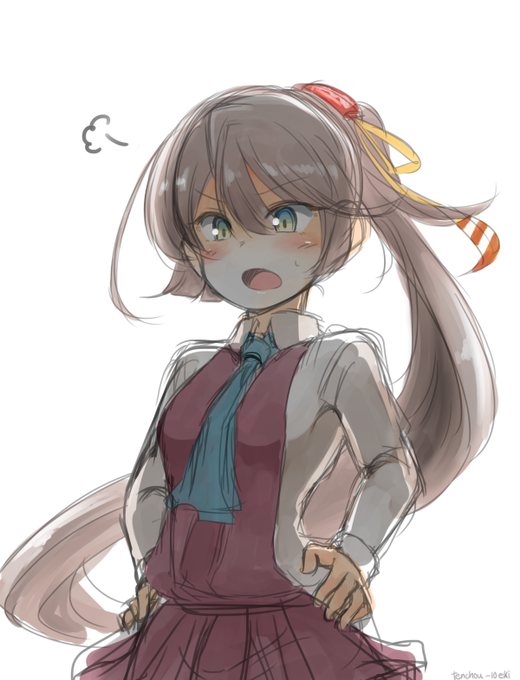 #艦これ版深夜の真剣お絵描き60分一本勝負 #艦これ版真剣お絵描き60分一本勝負_20170410 まだ眠い浦風