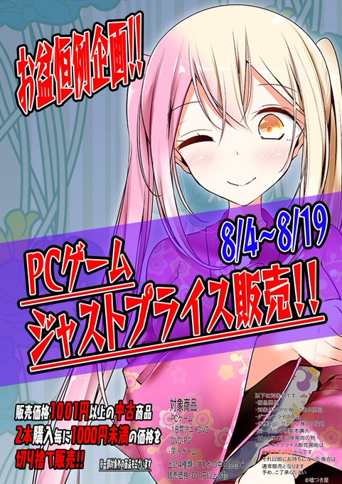 8/4~8/19まで PCゲームジャストプライス販売を開催中!