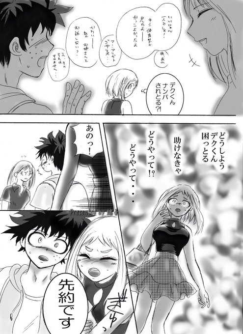 まちこさんにネタをお借りして描いた出茶漫画!!(全七枚) 「オールマイトコラボスイーツを提供しているカフェにお茶子ちゃんについてきてもらうデク、しかし・・・!」