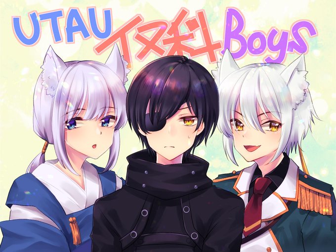 推したいUTAUイヌ科ボーイズです。最年少にあわせてかがんでくれるおじ……お兄ちゃんたちやさしいね。 左から、碧衣ココノツくん、夜闇狼くん、銀歌ミツキです。2枚目は推しポイント。