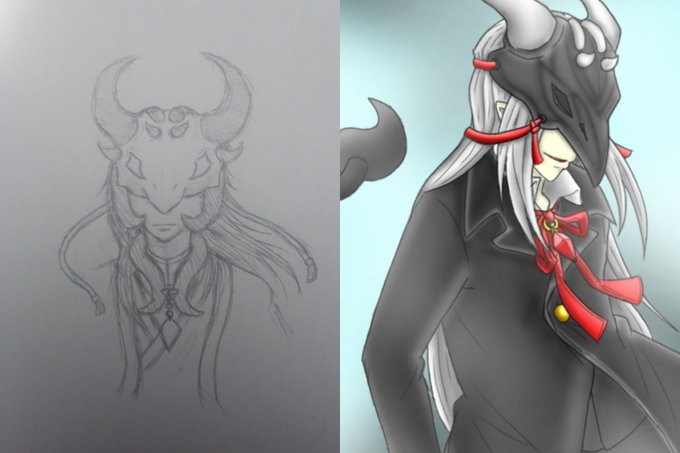 #同じキャラで一番古い絵と最後の絵を比較する 素顔有りと無し