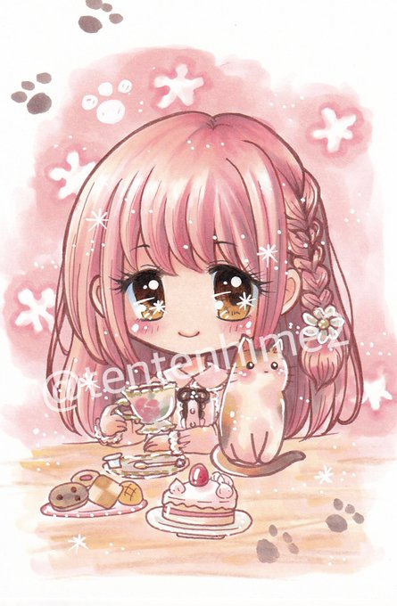 完成♫ あ、可愛い♡ って少しでも思っていただけたら 嬉しいです(⁎ᴗ͈ˬᴗ͈⁎) #手描きイラスト #アナログイラスト