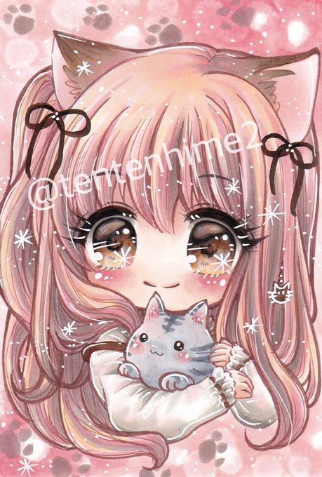 今日は2月22日♪にゃんこの日🐾 オリジナルイラスト 『猫耳の姫ちゃん♪』を 描いてみました♡ #手描きイラスト #ねこの日 #メルカリ