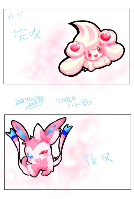 マーカーのご依頼頂いイラストのイーブイとグレイシア☺️ アイコンにもしてくださるとのことでアイコン用も作りました✨