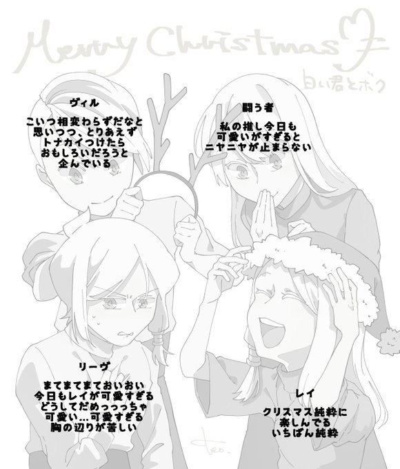 メリークリスマス🎄 白い君とボク ご愛顧いただきありがとうございます! いまだに新しく見てくれる方がたくさんいてとてもとても嬉しいです 今後ともこの4人をよろしくお願いします