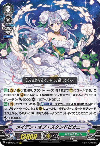 今密かに考えてる「セシリアЯ軸の銃士百合デッキ」、銃士名称じゃないけどメイデン・オブ・スタンドピオニー入れて「立てば芍薬座れば牡丹、歩く姿は百合の花」にするのも良いのでは…?って考えが浮かんできた(牡丹の枠はマルティナ&トゥーレ)