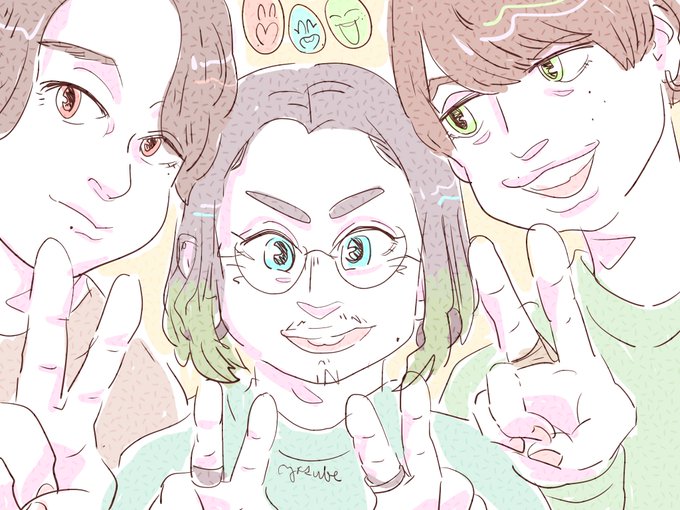 色んな人描く練習がてらの推しコンビ ①きんぷりちゃん:きてぃれん ②なにわちゃん:橋長 ③せぶんめん:ぽんれあ 松松とほくじゅりも描きたかったけど力尽きた もうバレてると思うけど顔周りに手を持ってくるポージングが手癖になってます、、