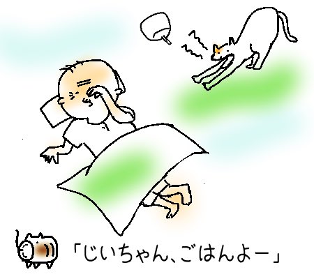 この頃 ネズミィに じいちゃんのことはすっかりまかせているけれど、夜も働いているのです。じいちゃんいつでも避難できるよう。