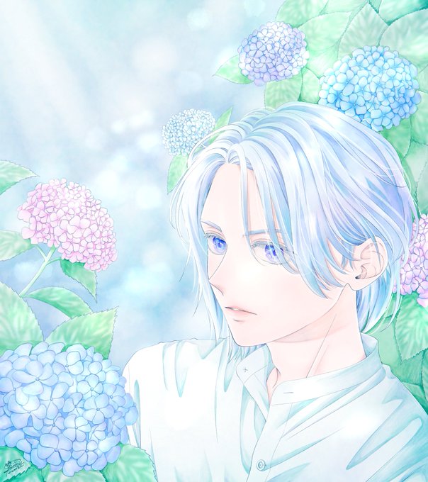 #イラスト #デジタルイラスト #ibisPaint #ibisPaintX #紫陽花 #イケメン #イラスト好きな人と繋がりたい #漫画家志望