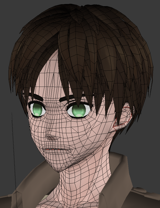 ZBrushのエレンの顔の出来上がる過程と出来上がり。