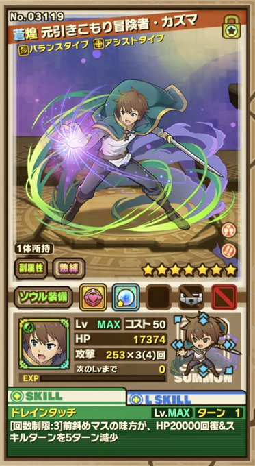 ソウル&副属性 熟練は無くてOK バステト,カズマを残すのは、中ボス残り2ターンで2人を1マスずつ下におろせばOKかな?(動画はサボった)