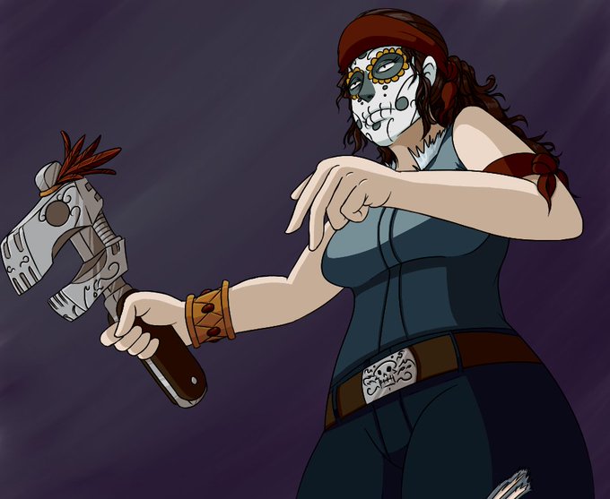 Here is my Gangrel from Vampire: the Reqiuem, A.Riva (Arlette Riva). A french college student with a fascination for Mexican culture, especially day of the dead. Got bit while studying abroad and never went back home. Now she's part of a vampire biker gang.