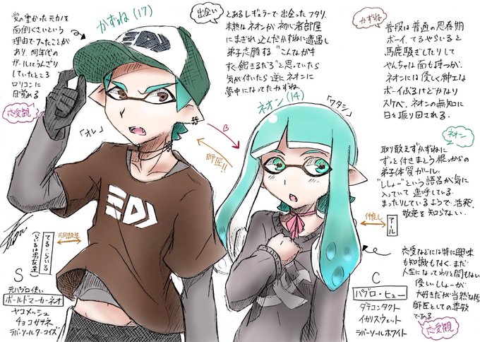 新しいマイイカ、師弟関係のかずねくんとネオンちゃんのキャラシと紹介雑漫画です!