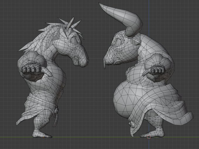 クエスト対応アバターの進捗 それぞれ7500ポリゴン以下に収めたので あとはウェイトとテクスチャ作業をしなければっ