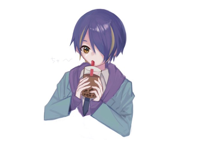 忍くんがタピオカ飲んでる‼️カワ‼️という絵です
