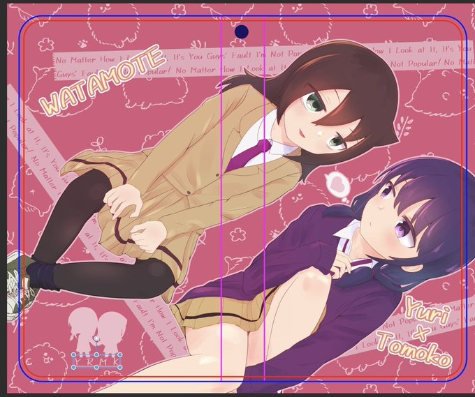 スマホケースのデザイン大体出来たからもうちょい詰めたら印刷所さんに出すぞ出すぞ #わたモテ #watamote