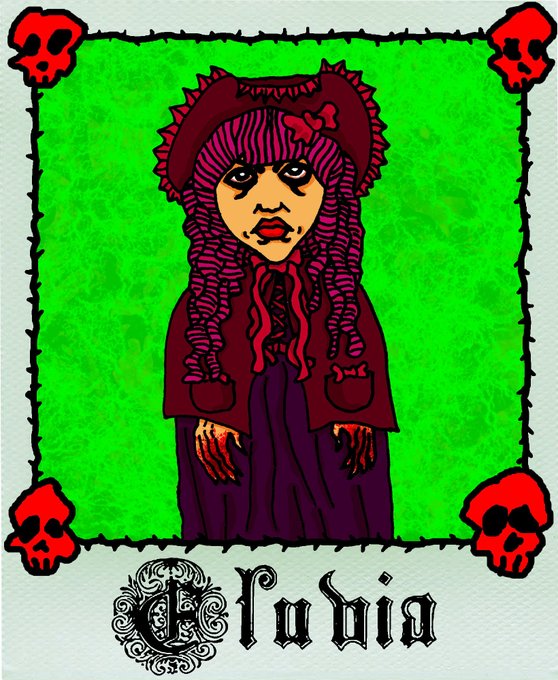 Amigos, for #FridayThethirteenth how about more #InstantlyGhoulish #tradingcards? Meet Eluvia, who seems in need of washing her hands of some red substance. Ignore the skulls, I'm sure no one was harmed. Enjoy & next week more #gothgirls #gothart #horror #digitaltradingcards !
