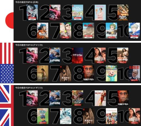 @ReutersJapan 2021.10.13 更新のランキング。鬼滅は韓国では7位で「DP」の下か。