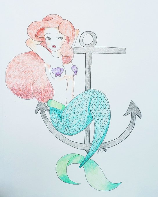 Had fun drawing Ariel in an old school tattoo style.