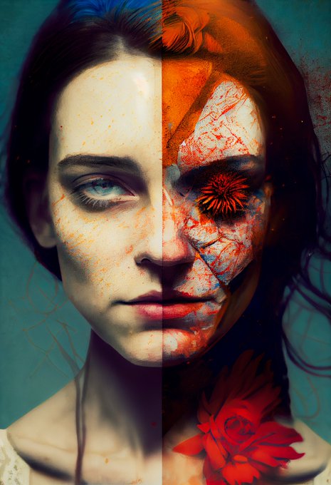 This work is based on my original hic et nunc 1/1 piece "rainbow falls" from May 2021, OBJKT #97094; the output of that hand-coded piece of generative art is first fed through an AI, then digitally painted and post-processed. Coming soon to @exchgART on #SOL