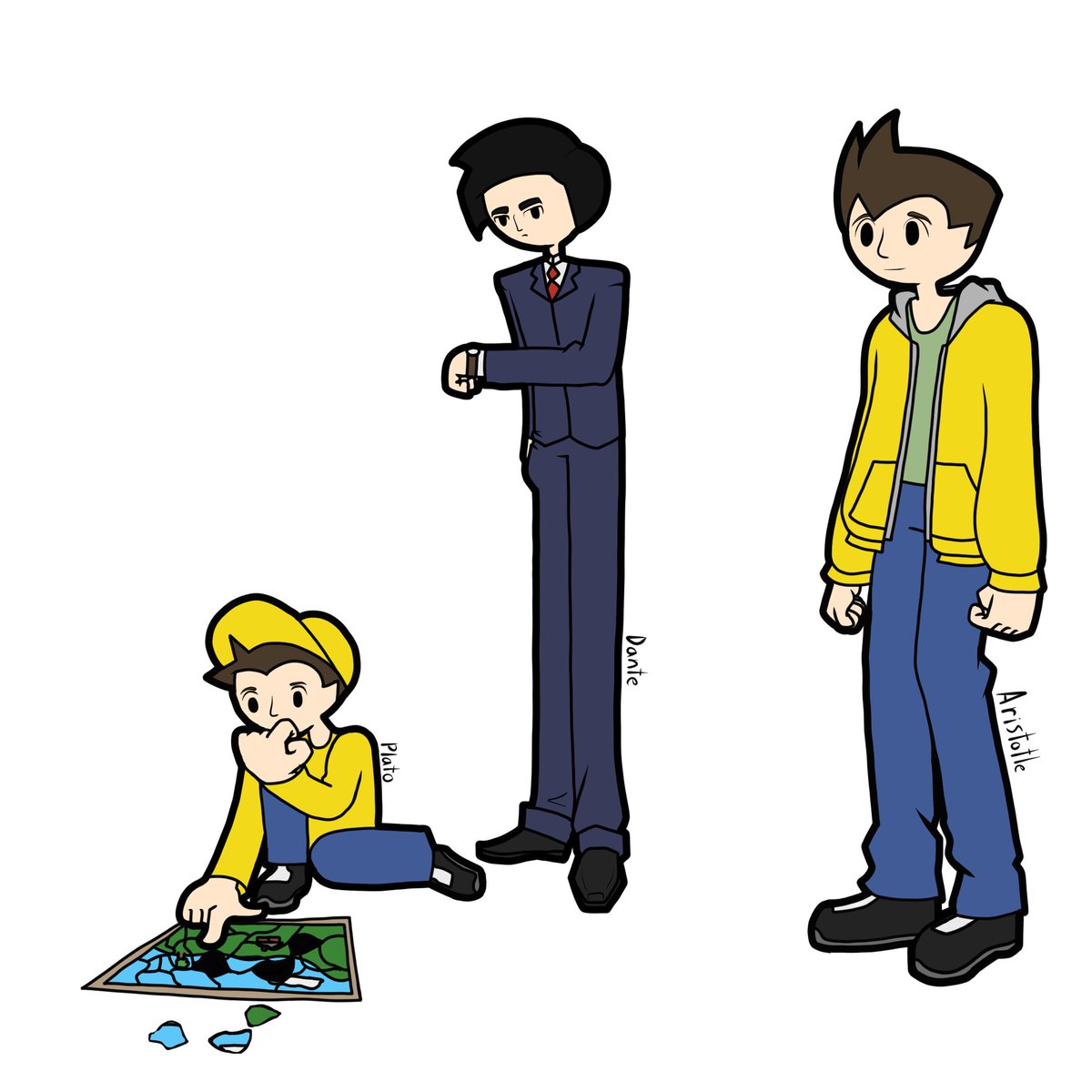 This is an important cast of characters for me. Though there are three depicted they are all part of the same individual. This is Aristotle and his alternate personalities. This is Dissociative Identity Disorder. But just means he's a normal guy with more to understand.