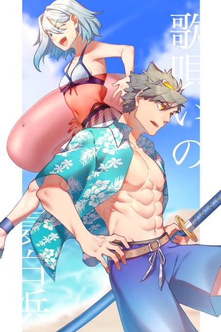 @KATANAGAMI_kabe 燎ちゃんとかぐやも夏満喫🏖 #カタナガミ_ギャラリー