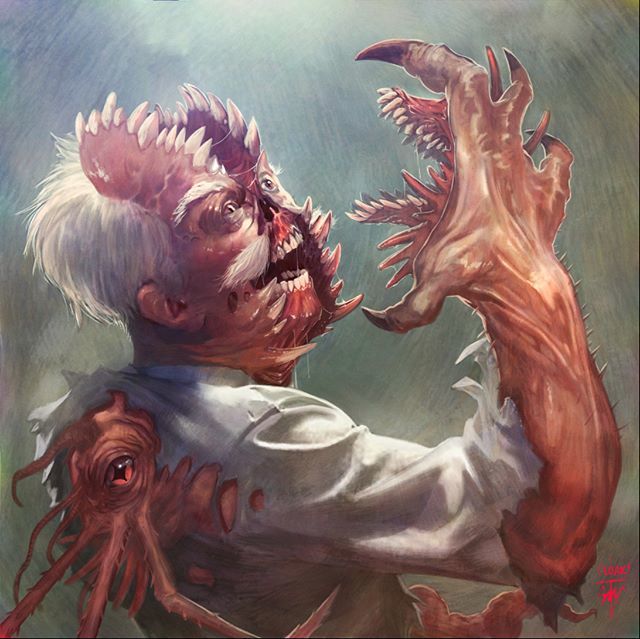Was stuck between art & games while on a late night stream with @anireal when my buddy @artofblake suggested I indulge my dark mood w some nurgle demon action. Thanks, dude! #thedarkcloak #nurgle #twitch #demon #spooky #horror #monster #artist https://t.co/s9FplutFKi