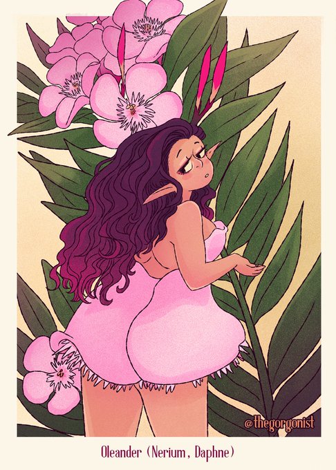 Day 18 is Oleander! Another glamorous but dangerous favorite from my California childhood. Really missed driving down I-5 for conventions and seeing the medians full of these incredible pink flowers this year. #illustration #illustrationart #poisonousflowerfairy