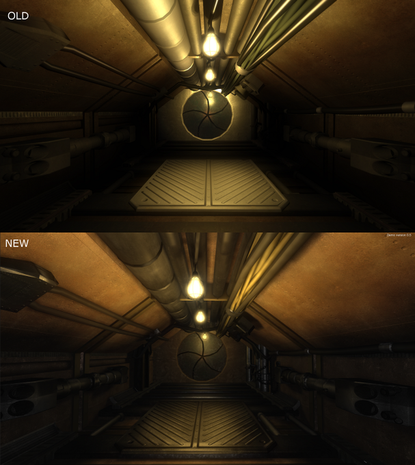 Finally got a chance to change the materials and lighting in the corridor