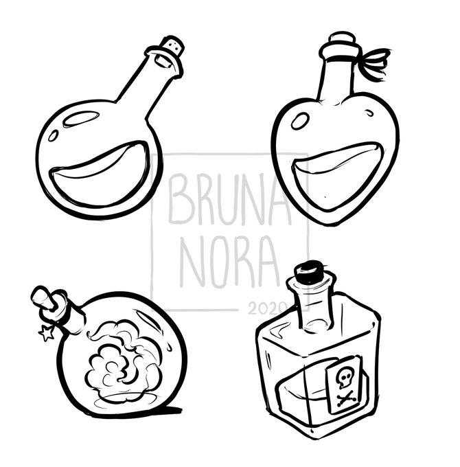 Inclusive deixa eu postar aqui as poções fofinhas que fiz ontem. Vocês preferem com cor ou sem?