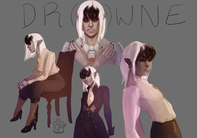 Some sketches of the lovely Drowne, @thedaslawhawke's character (from our new campaign) for his BIRTHDAY so you should also WISH HIM A HAPPY BIRTHDAY!!!