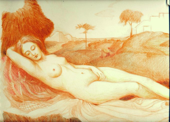 A drawing I did after Georgoni's Sleeping Venus.