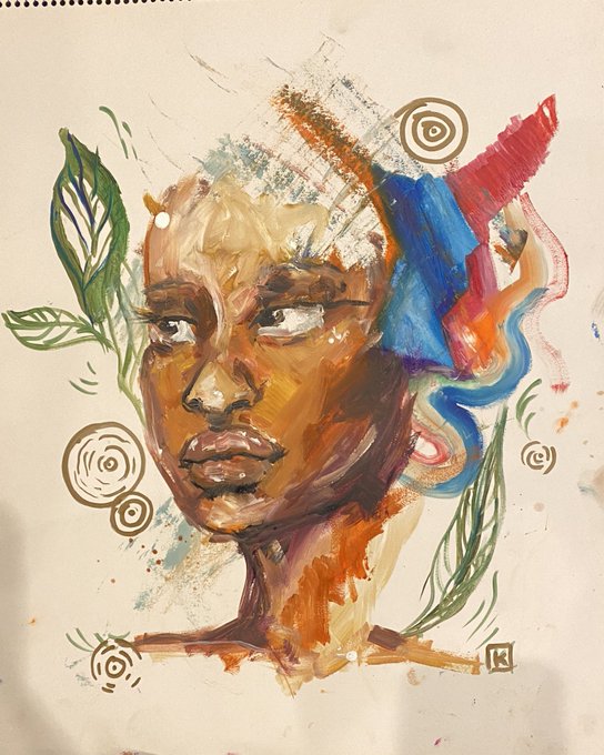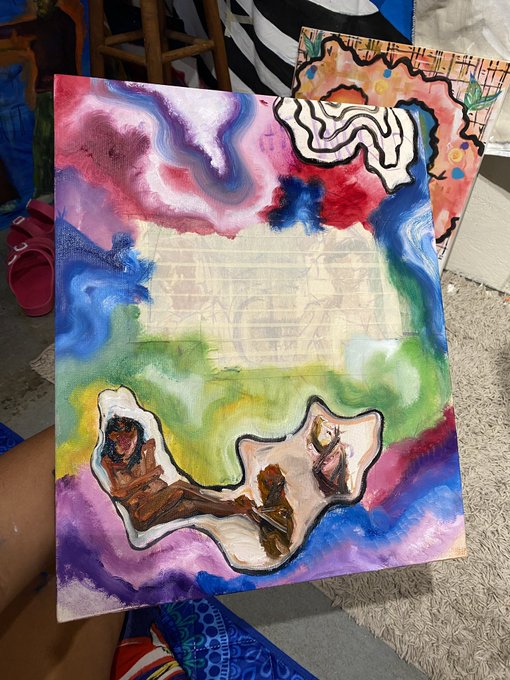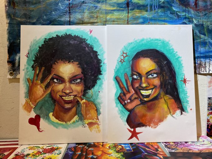 my pieces that i live painted tonight! i sold the portrait! i love the little dudes and how fluid both pieces are 🤗