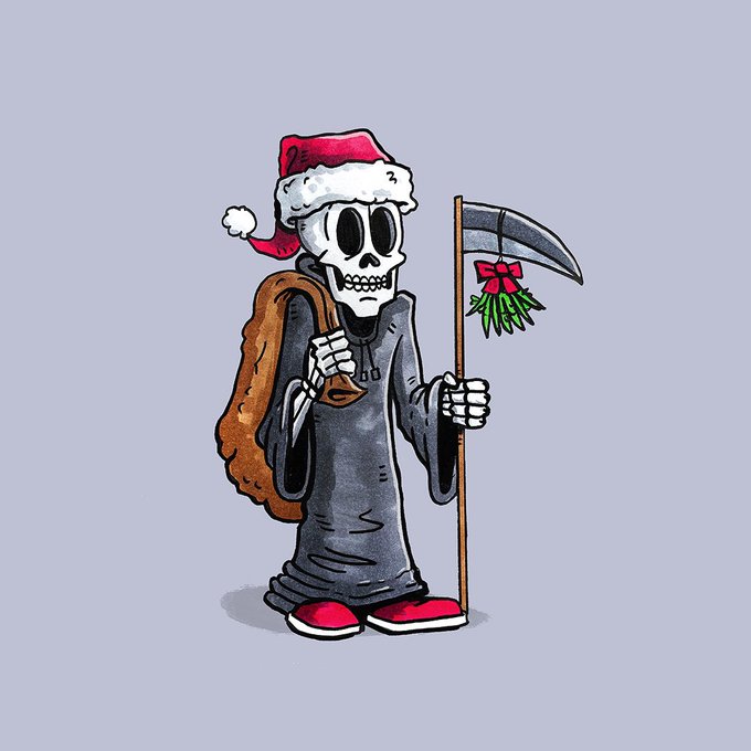 Quick holiday doodle. 💀🎅🏻