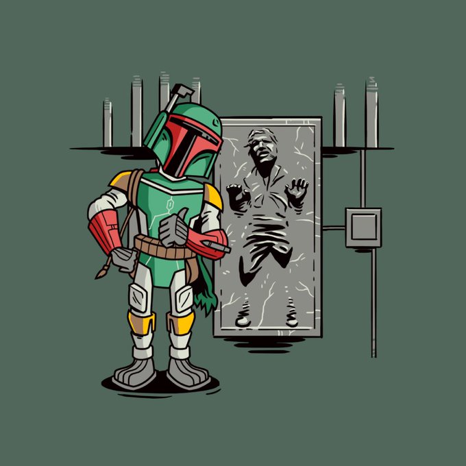 Everyone jazzed up for #TheBookofBobaFett ? Going to be super bummed if there’s no baby jar jar. Here are a few officially licensed Boba Fett illustrations I did for @RSVLTS this year.