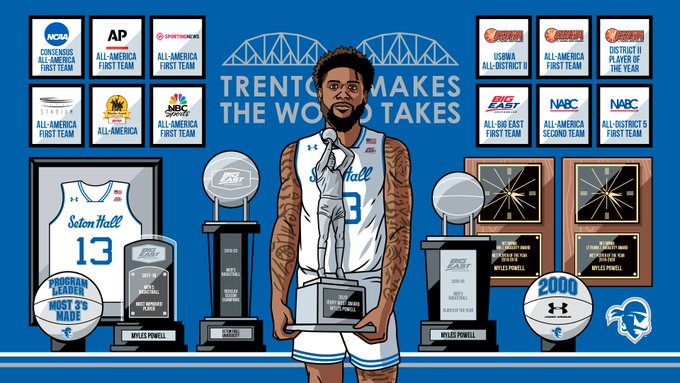 Good luck tonight to the Seton Hall 🐐. Here are a few of the illustrations I worked on last season featuring Myles Powell. #NBADraft