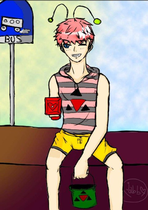 หนุ่มไลน์แมนของ @Pupumeteor กับออเดอร์ปาท่องโก๋แยกนม ชอบมากเลยแอบวาดแฟนอาร์ตมาหวีดครับ 💕💕😂
