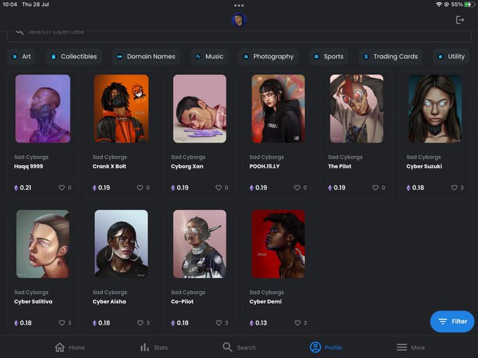 His collection “SAD CYBORGS” are available on @opensea