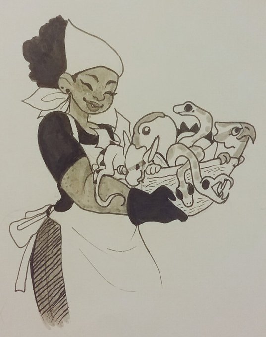 Delayed #Inktober days 15 and 16. One super busy day threw me off for nearly a week! Here's a dragon caretaker and a futakuchi-onna.