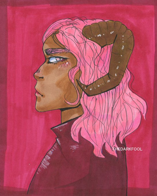 drew one of my characters again, in a slightly different style. their name is Rose and they're possessed by a demon