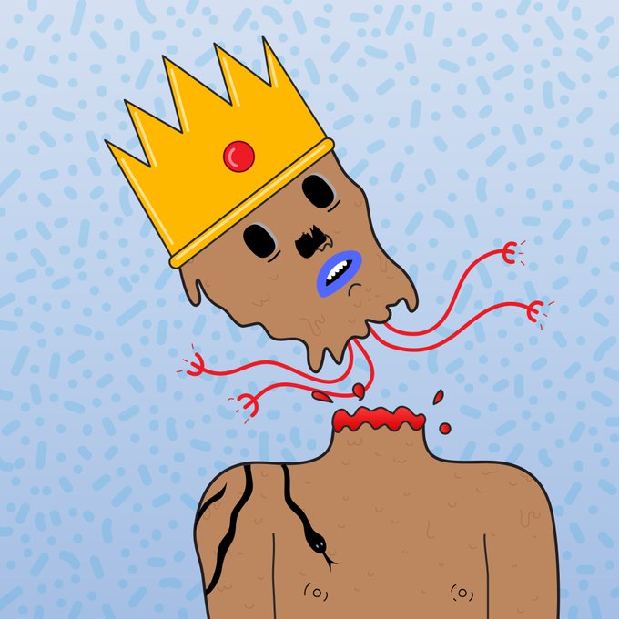 Say hello to @thededhedz #1000 wearing a 'Super rare' Crown. 24 hour auction for this High King is now available here https://t.co/0MRoZUMXmD with a reserve of 10 Tezos.