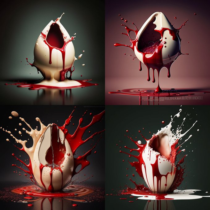 “photography of a blood filled egg being cracked open, dripping blood, cream background --no yolk”