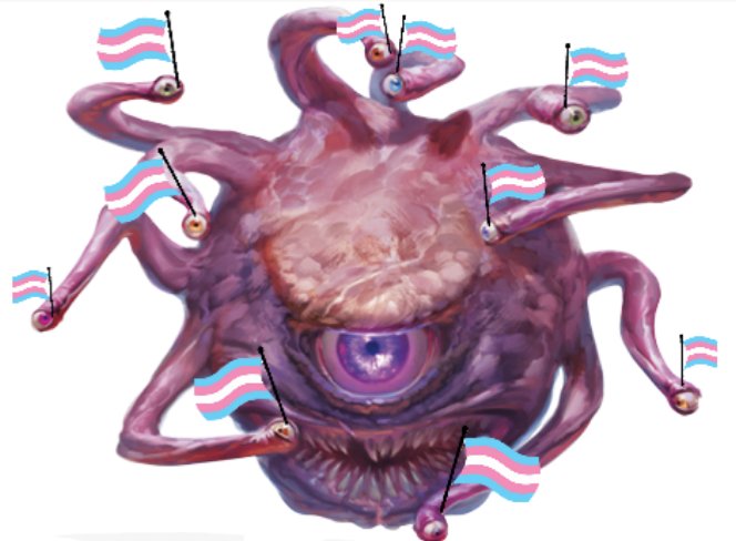 Trans rights are human rights. You are valid and you will always belong in our stories & in our parties. If anyone has a problem with that, they can talk to the Beholder.