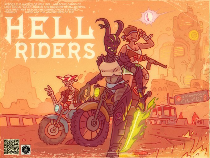@mr_kaizen @pascalblanche Ah! thanks for the follow glad you dig it! Hellriders is this pitch i've been cooking up for a while, anarchic damned souls and demons team up and defend an autonymous zone in the City of Dis. In the key art phase rn but have an animatic in the works