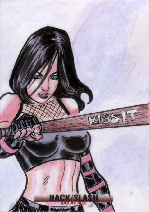 I don't recall if I ever posted any of these sketchcards featuring @HackinTimSeeley's excellent Hack/Slash characters. I ended up doing 6. #HackSlash #ACEO #comics #art