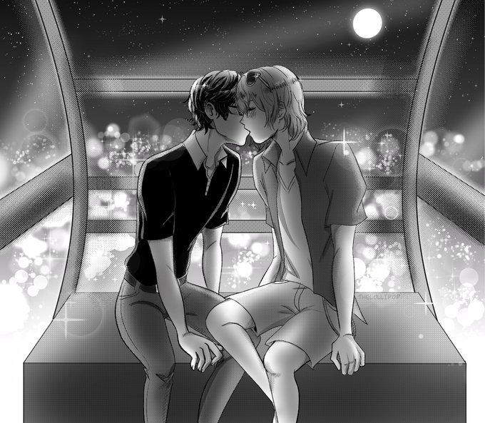 im a day late but here is my piece for shuake week day 7: roadtrip!! *inserts akechi into p5 strikers so he can go on the ferris wheel together with akira* #ShuakeWeek2021
