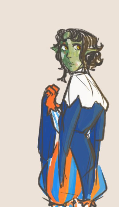 @peekis_art I think I'm a bit late to this but this outfit is SO Marzipan!! She's a halfling/goblin (aka... gobling 👀) and she's a clown!!! At some point she got a custom outfit made for her and she couldn't pick a favorite color, so they just used ALL the colors 🤡🤡🤡