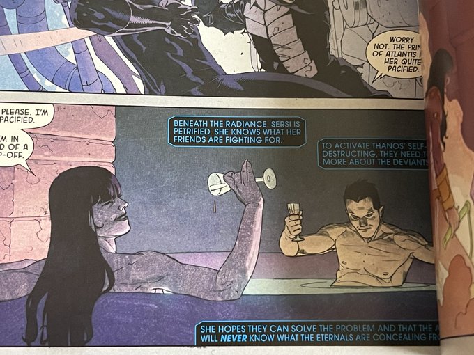 誤解から仲間割れが始まるアメコミあるある内ゲバファイトの末に魔法で「みんな落ち着いて(chill out)」と唱えたニコ、文字通り場がチルになってクソ寒くなる。なんだこのギャグ漫画みたいなバトル…