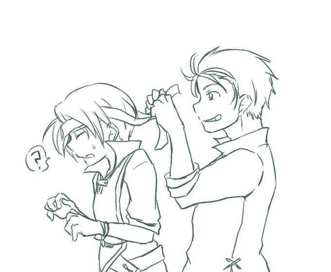 セオのおでこに巻いてるあれは、家を出る時に「なんか締まりがないな」って兄がタイにしてた布を適当に結ばれたという話がしたい。 バンダナ結ぶには少し変わった結び方(二重止め)にしてるのは、「気を引き締めて行こう」と初心を忘れないように最初に兄にされた結び方と同じにしてるからです