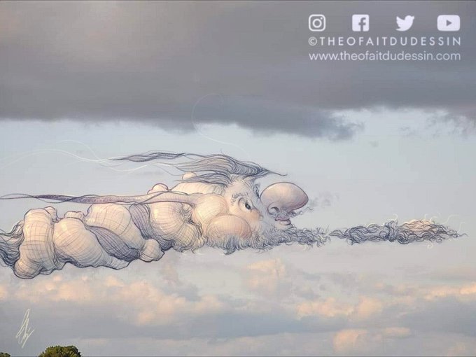📢 Demain, 16h00, retrouvez la création de ce nuageux en timelapse, sur ma chaîne YouTube (Théo fait du dessin).